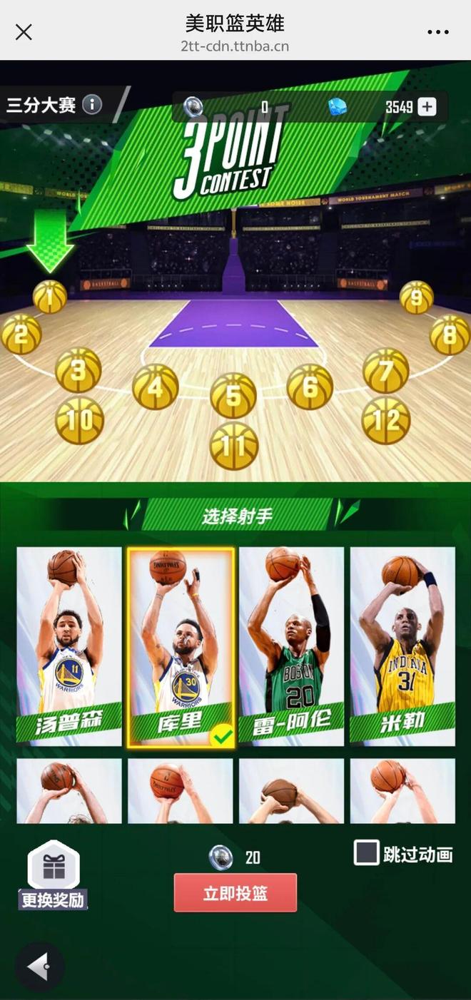 选择你信赖的三分射手为你拿下奖励
