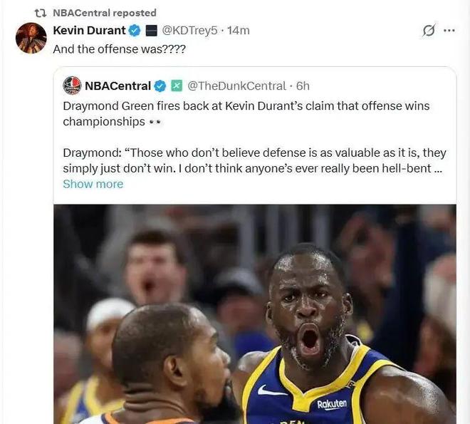 很快,格林就对杜兰特的言论做出回击: